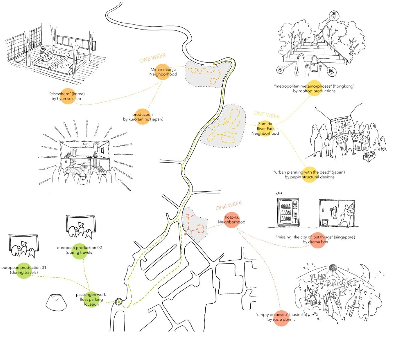(top) Pre-research diagram, ‘Theatre of flows’ < Theatre of Flows, raumlaborberlin >